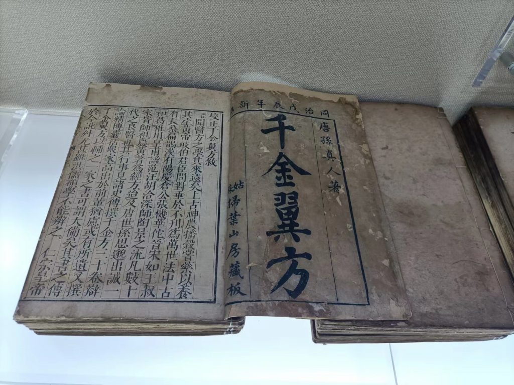 馬建中中醫(yī)典籍館的館陳典籍《千金翼方》(該書為唐代著名醫(yī)藥學(xué)家孫思邈晚年編撰,成書于公元682年,全書共30卷。收錄的方劑、論述及療法2900余首,藥物800種。傳世的《千金翼方》版本在宋代由校正醫(yī)書局予以校正并刊行全國(guó),但宋代版本已于明代之前失傳。明萬歷年間翰林院纂修官王肯堂奉萬歷皇帝之命篆刻了宋版《千金翼方》,但王氏宋版《千金翼方》歷經(jīng)數(shù)次戰(zhàn)亂,亦流落民間,不知其蹤跡)。