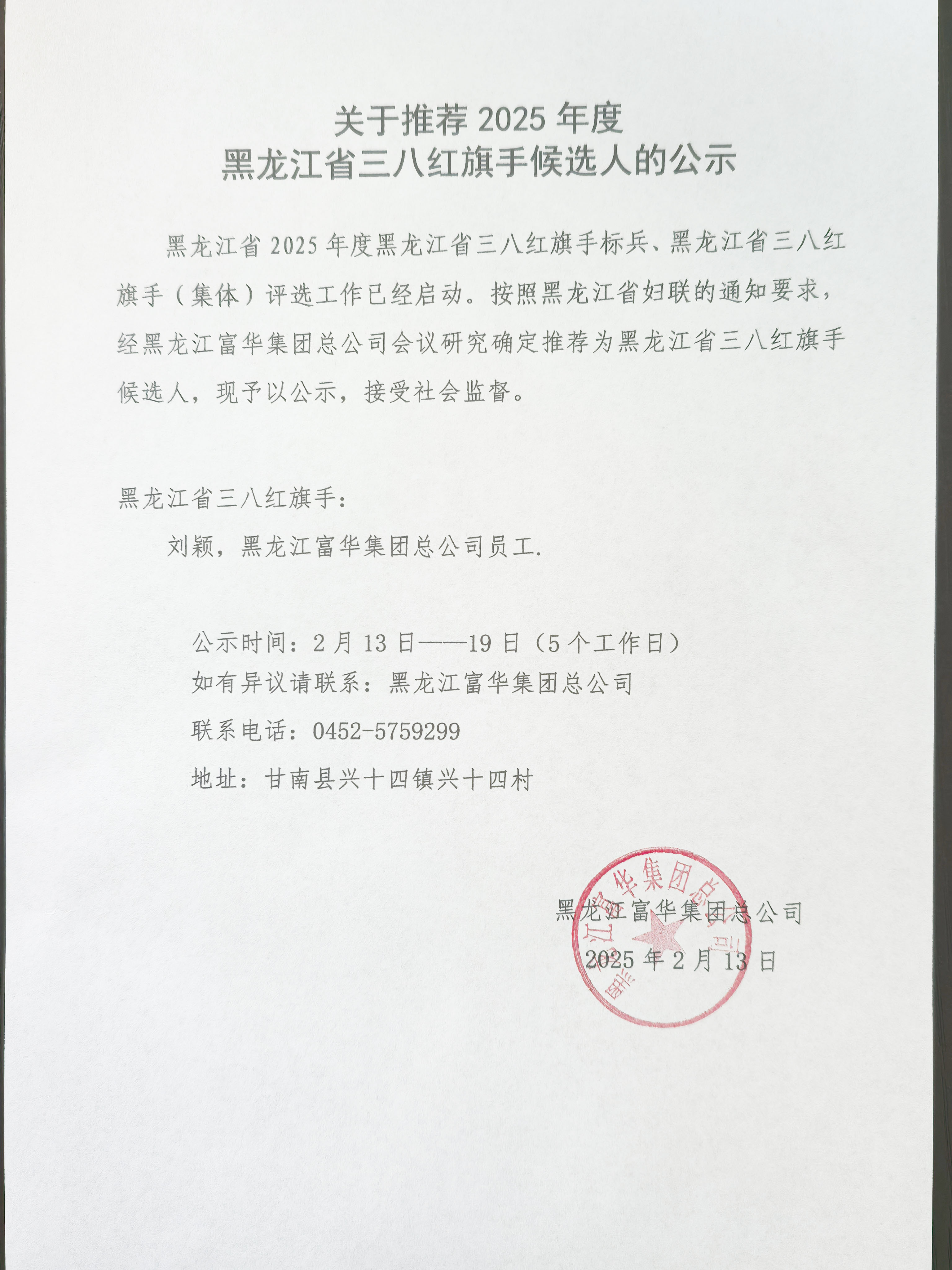 關(guān)于推薦2025年度黑龍江省三八紅旗手候選人的公示